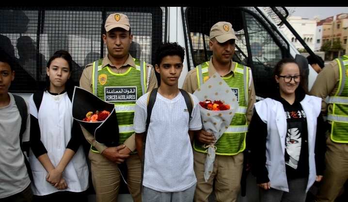 في لفتة إنسانية مؤثرة، شهدت مدينة أكادير صباح اليوم السبت مبادرة رمزية جسّد فيها تلاميذ عدد من المؤسسات التعليمية الإعدادية والثانوية أسمى معاني الاعتراف والتقدير، حيث أهدوا باقات ورود لعناصر الأمن الوطني والقوات المساعدة، تعبيراً عن امتنانهم لما بذلوه من تضحيات جسام لحماية الأرواح والممتلكات العامة والخاصة، عقب الأحداث التخريبية التي عرفتها بعض المناطق مؤخراً، والتي تورط فيها جانحون وقاصرون خرجوا عن القانون وعن نهج السلمية الذي يطالب به المحتجون في إطار تحسين أوضاع التعليم والصحة.