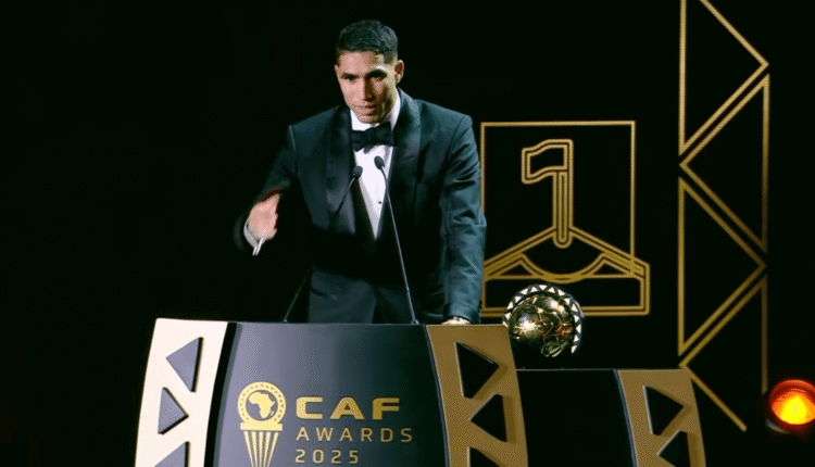 توج الدولي المغربي ولاعب باريس سان جيرمان الفرنسي أشرف حكيمي بجائزة أفضل لاعب في إفريقيا لسنة 2025، خلال حفل جوائز الاتحاد الإفريقي لكرة القدم، متفوقاً على المصري محمد صلاح نجم ليفربول والنيجيري فيكتور أوسيمين لاعب غلطة سراي.