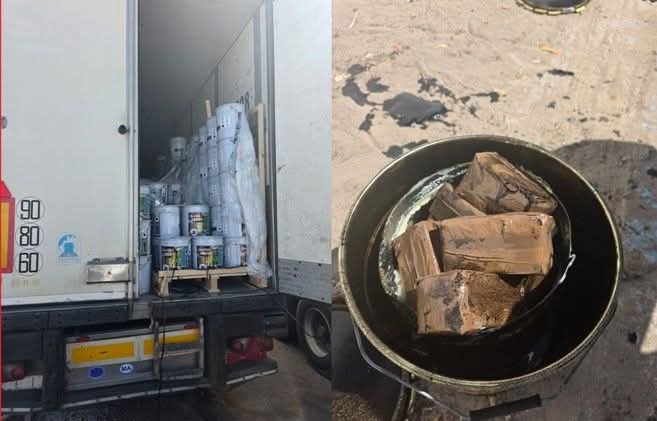 وأسفرت إجراءات المراقبة الدقيقة والتفتيش المعمق، بمساعدة الكلاب البوليسية المدربة، عن اكتشاف الشحنة المخدرة التي كانت مموهة داخل حمولة من مواد الصباغة محملة على متن شاحنة تحمل لوحة مغربية، كانت في طريقها نحو إحدى الدول الإفريقية جنوب الصحراء.
